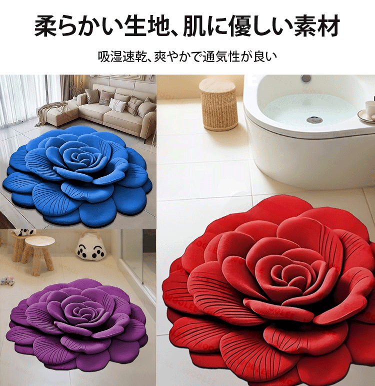 【3D視覚】フラワー珪藻土バスマット